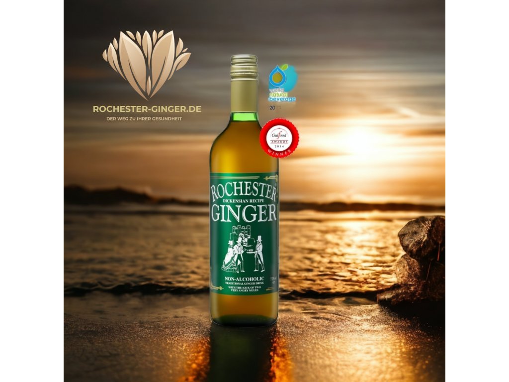 Jede Flasche Rochester Ginger trägt das Erbe englischer Tradition – sie verbindet handwerkliche Qualität und ehrliche Herstellung in Großbritannien. Seit der Zeit von Charles Dickens wird Rochester mit Respekt vor Tradition und natürlichen Zutaten hergestellt. Was Sie in den Händen halten, ist nicht nur ein Getränk – es ist ein Original, das andere nur nachahmen. Sei ein Original, trink das Original. 🍃